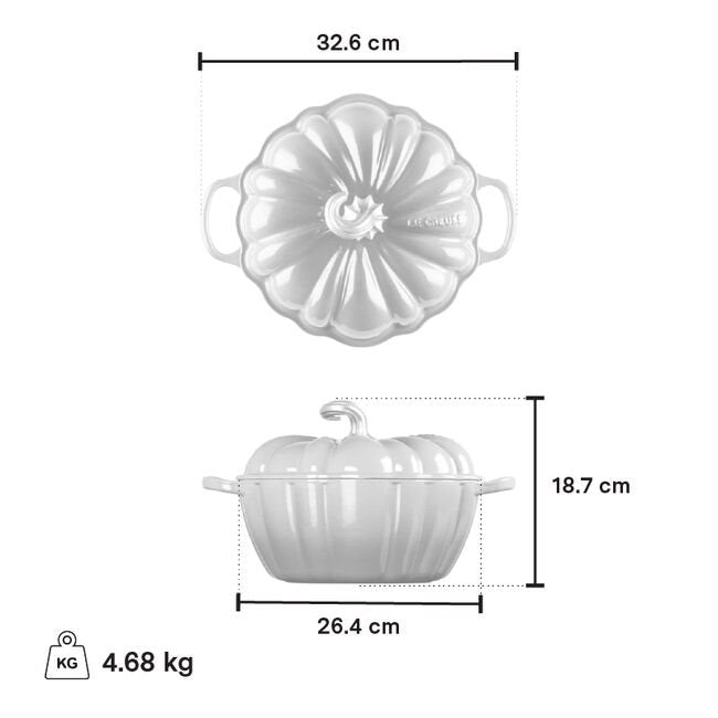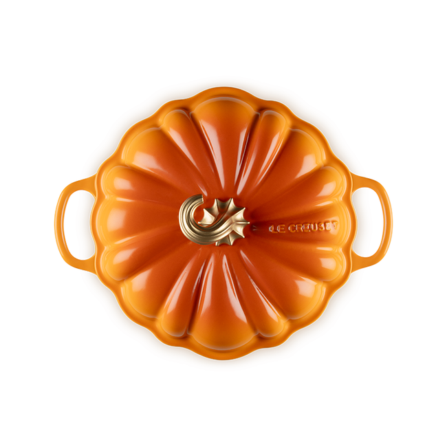 Prachtige braadpan van Le Creuset in de vorm van een pompoen. Gebruik deze gietijzeren pan voor het maken van soep, stoofpotten, eenpasgerechten of voor het verstoppen van Halloween snoepjes... Echt een beauty! Bekijk vooral de afbeelding van onze etalage waar de pan in staat om de kleur goed te kunnen beoordelen. Hij is echt feloranje (zoals een echte pompoen). Geschikt voor gas, inductie, oven, vaatwasser.
