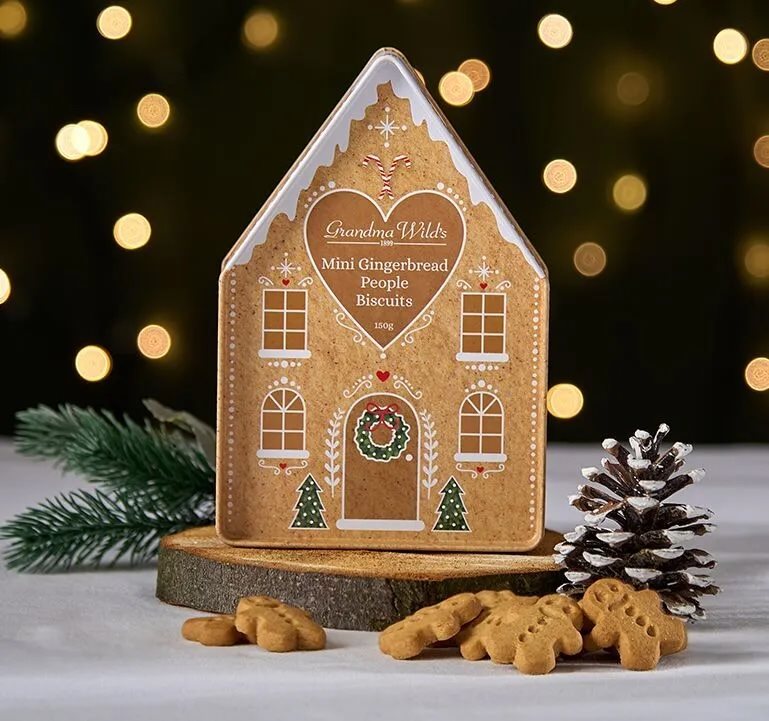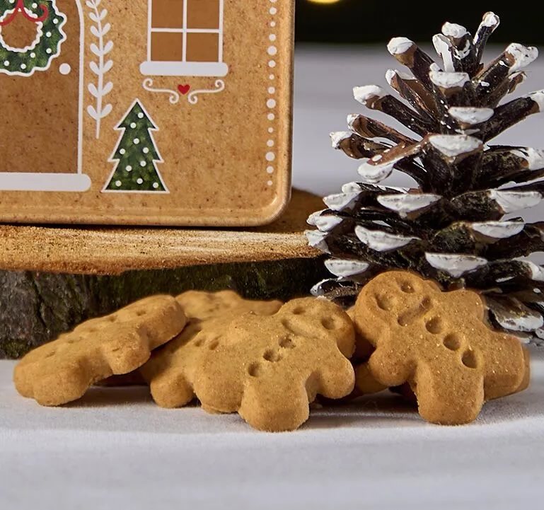 Prachtig kerstblikje gevuld met gingerbread koekjes.