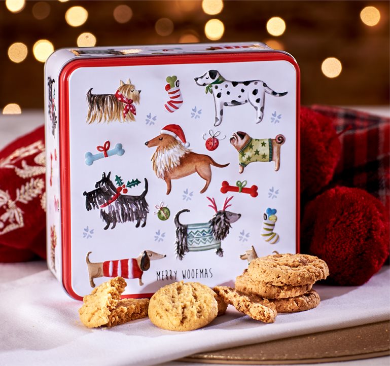 Koekblikje gevuld met gember-ctiroen en chocolate chip cookies.