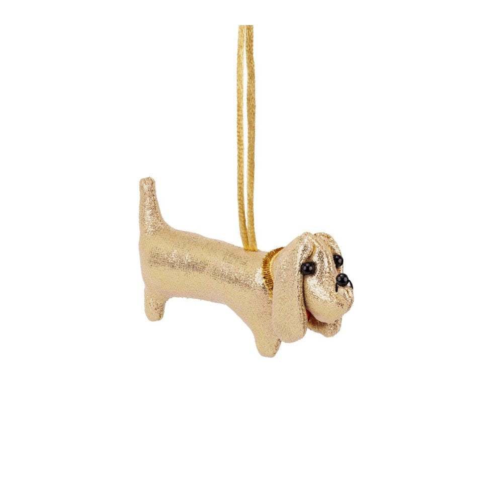 Leuke goudkleurige hanger van een teckel voor de echte teckelfan! Deze hanger staat erg leuk in de kerstboom.