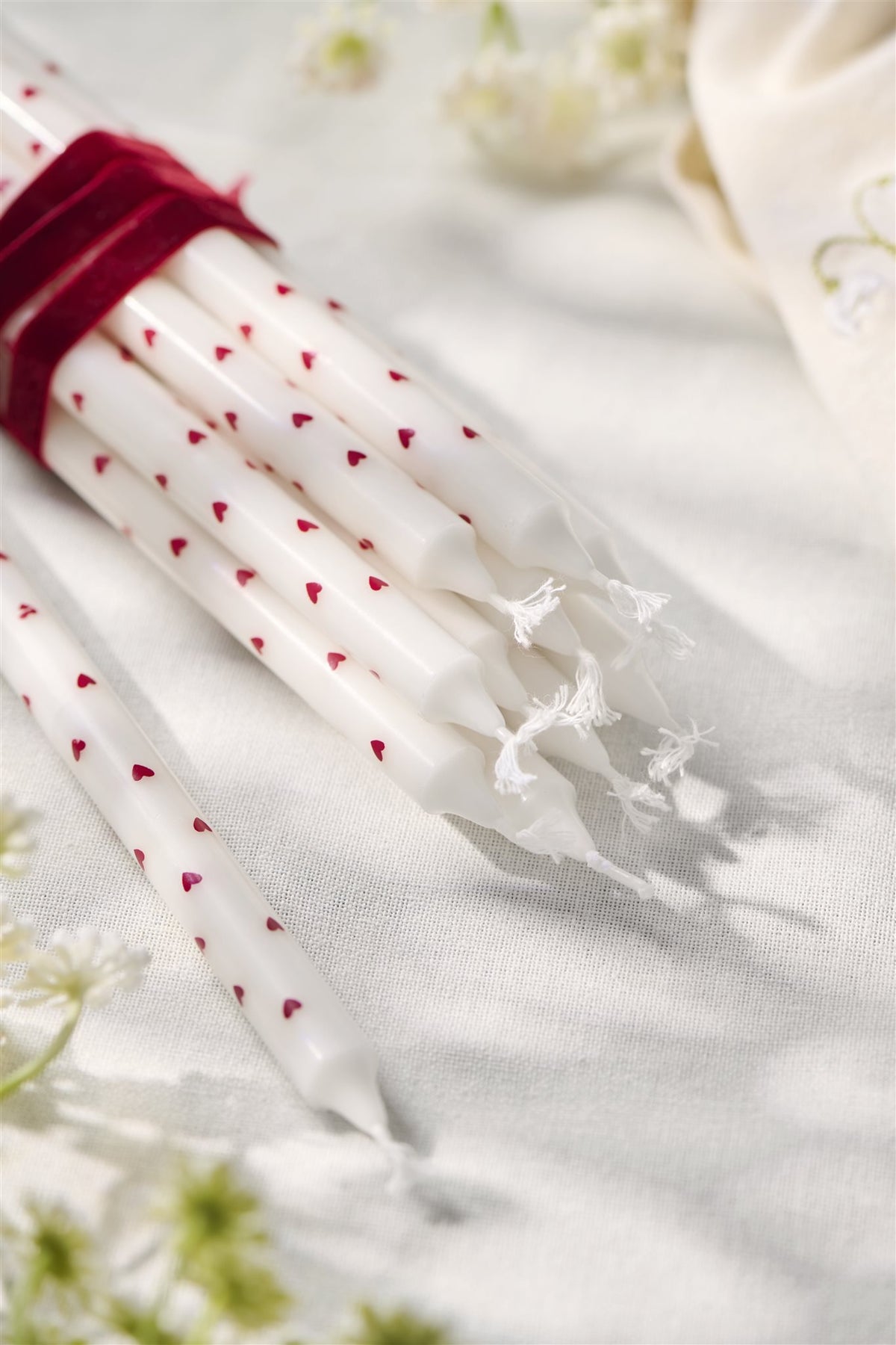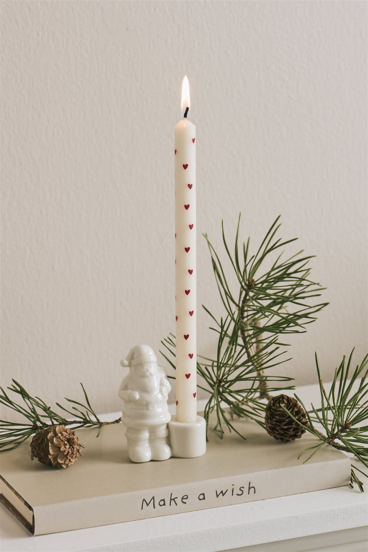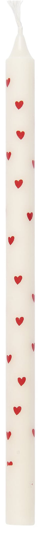 Lange en elegante dinerkaars met hartjes. Perfect voor Moederdag, Valentijnsdag of als een lief cadeautje – en voor alle momenten waarop je een warme en liefdevolle sfeer wilt creëren. Een kwaliteitskaars, gemaakt in de EU. Let op dit kaarsje is dunner dan 'gewone' dinerkaarsen, en past niet in alle kandelaren.