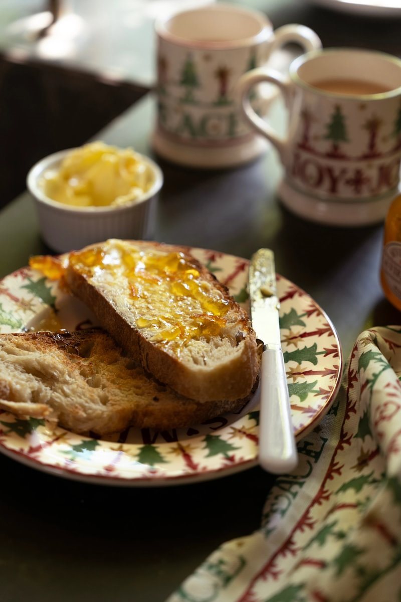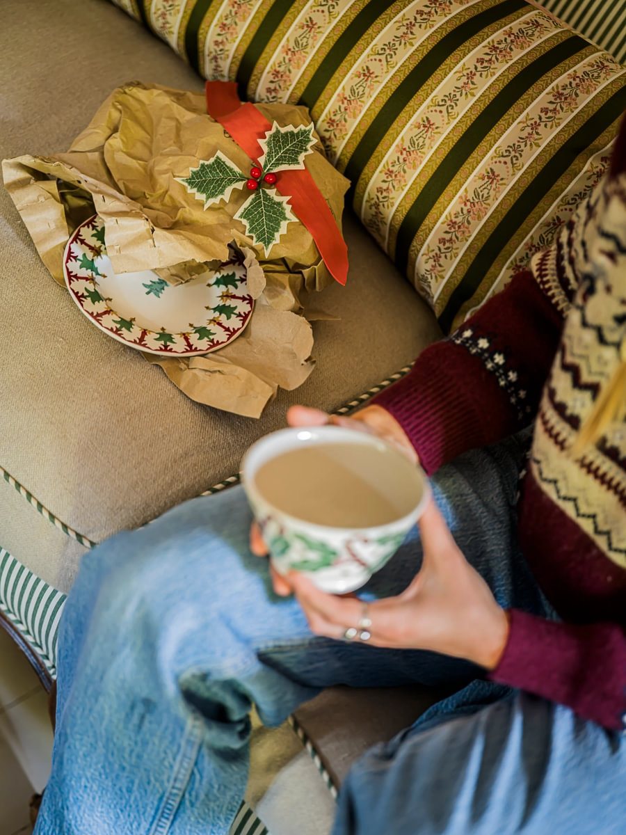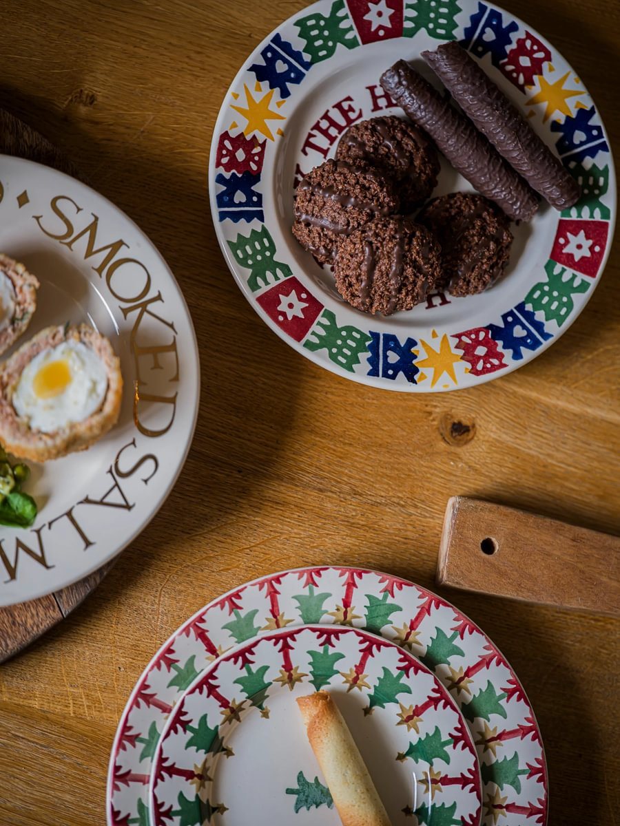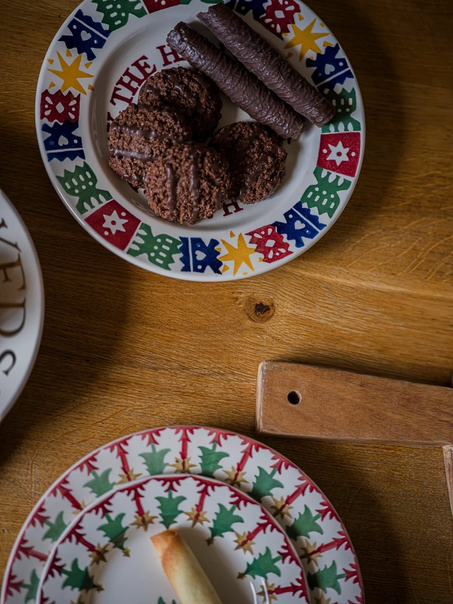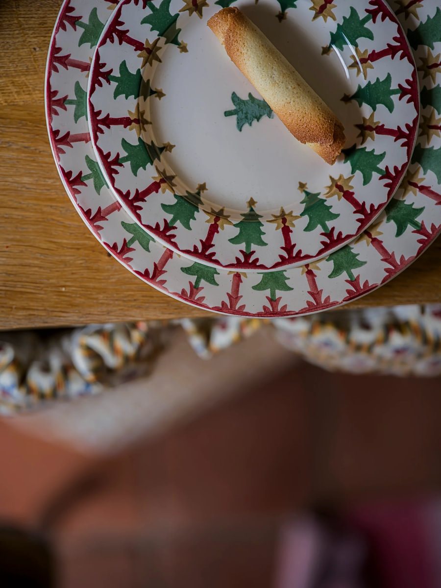 Gebaksbordje met de print Christmas Joy. Alle items van Emma Bridgewater worden met de hand gemaakt in Stoke-on-Trent in Engeland. Dit bordje is met de hand bestempeld. Daarvoor wordt een sponsje in de juiste vorm gesneden, waarna het in de verf wordt gedoopt om de print op het bordje te drukken. Zo bijzonder! Ieder item is uniek.