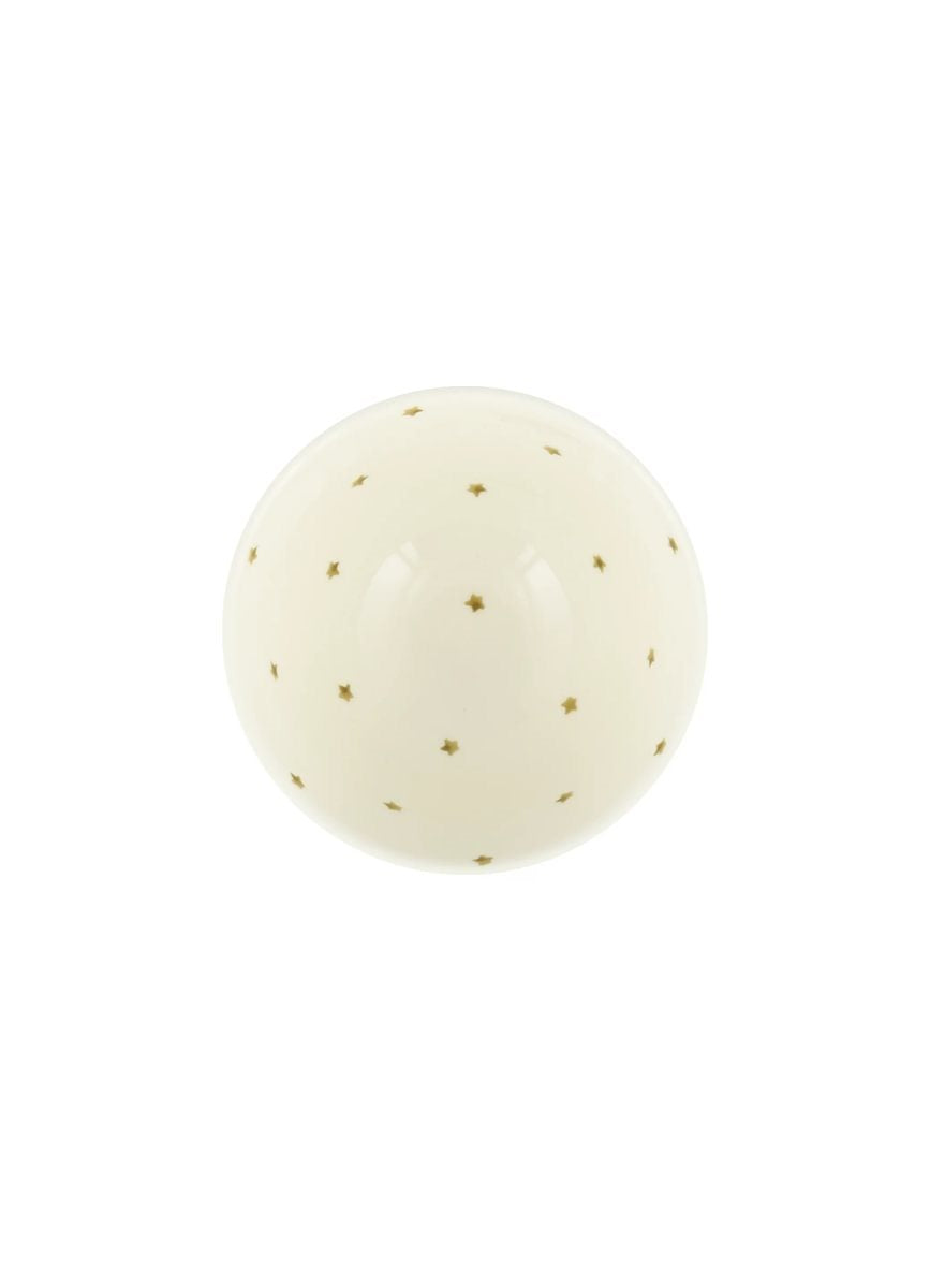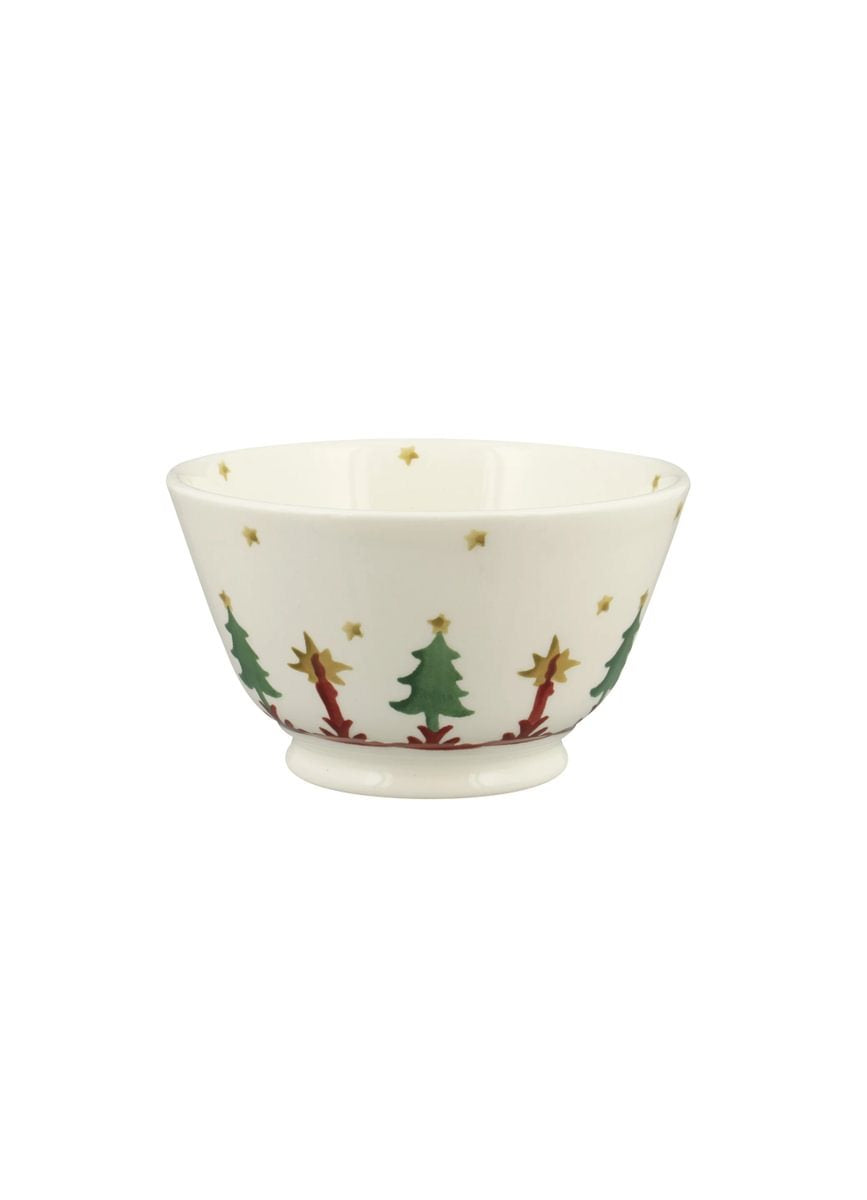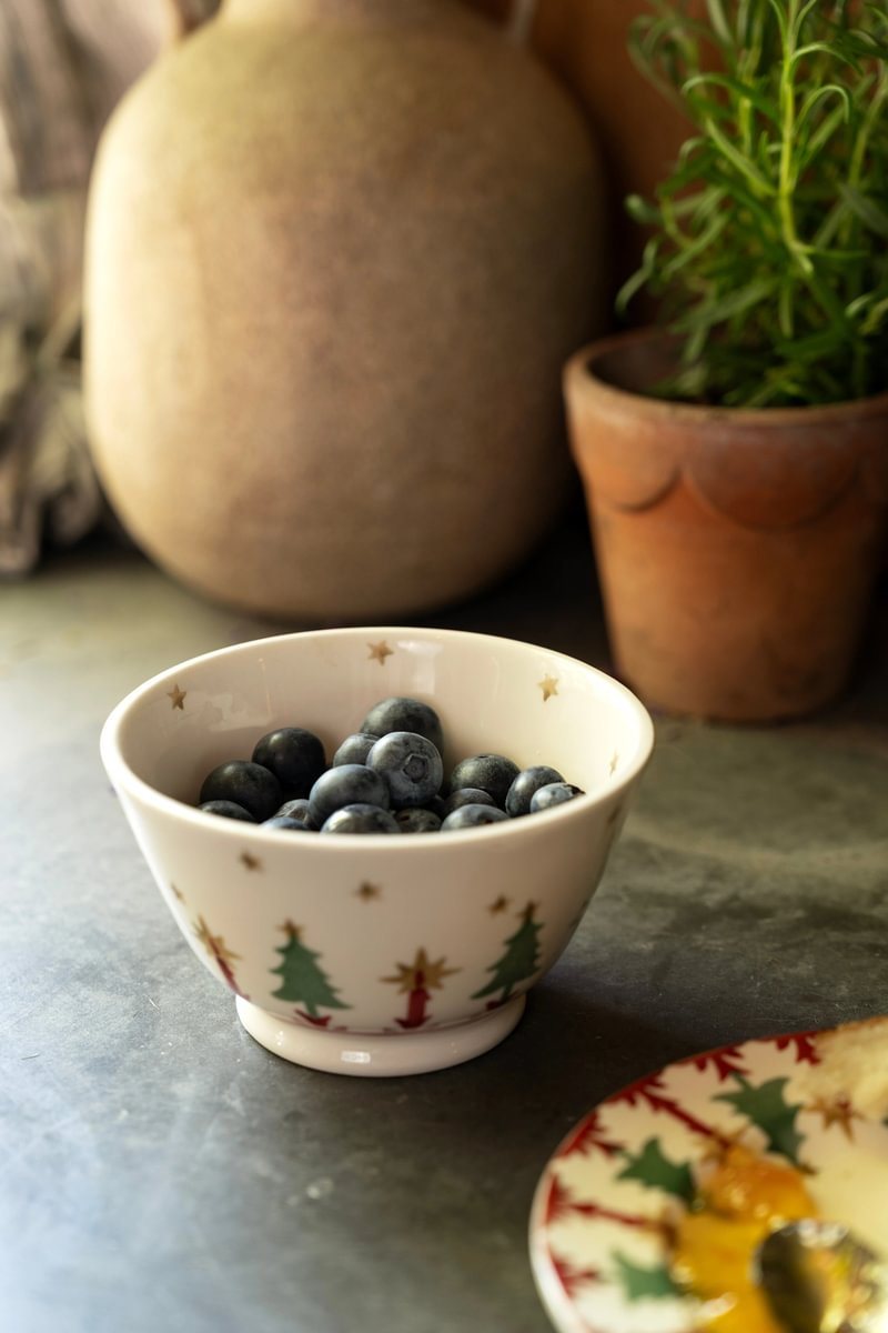 Schaaltje met de print Christmas Joy. Dit kommetje is met de hand bestempeld. Daarvoor wordt een sponsje in de juiste vorm gesneden, waarna het in de verf wordt gedoopt om de print op de kom te drukken. Zo bijzonder! Ieder item is uniek.