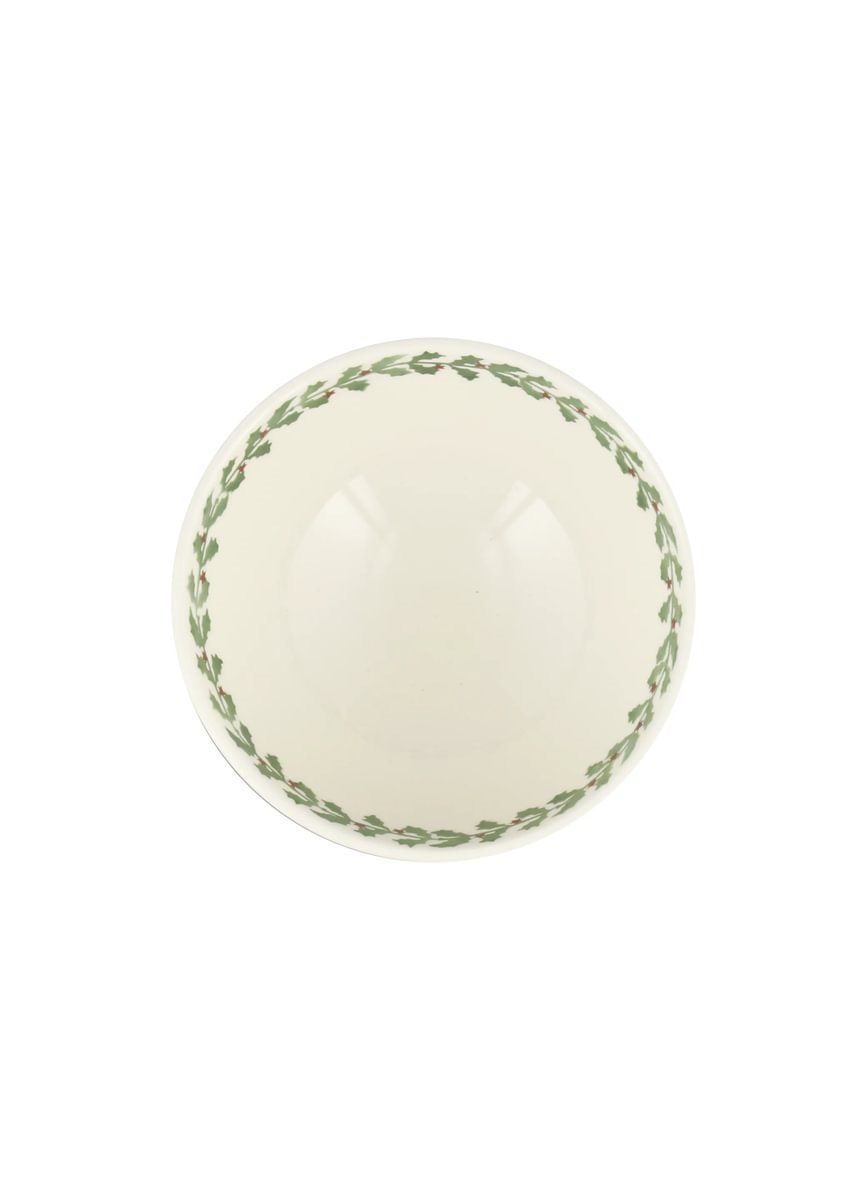 Schaaltje met de print Tiny Holly. Dit kommetje is met de hand bestempeld. Daarvoor wordt een sponsje in de juiste vorm gesneden, waarna het in de verf wordt gedoopt om de print op de kom te drukken. Zo bijzonder! Ieder item is uniek.