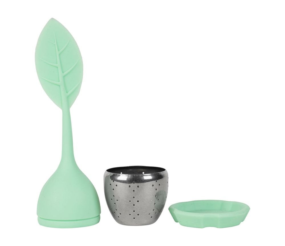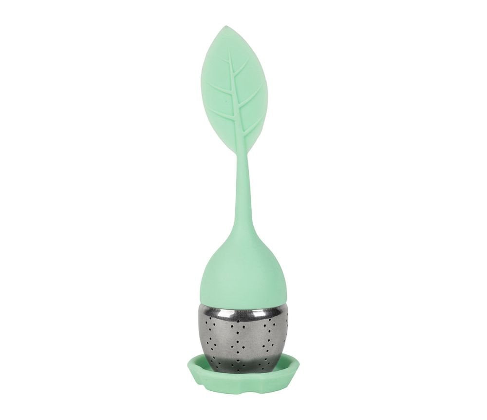 Siliconen en roestvrijstalen thee-ei met een blaadje. 5 x 15,5 cm