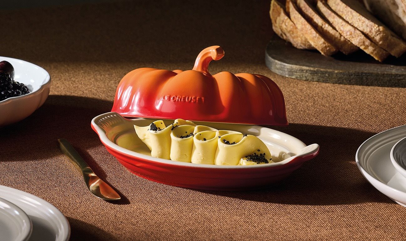 Deze botervloot wil je de hele herfst op tafel hebben staan toch? Gemaakt van stevig aardewerk, ook geschikt voor het serveren van kleine (oven)gerechtjes. Van het Franse merk Le Creuset.