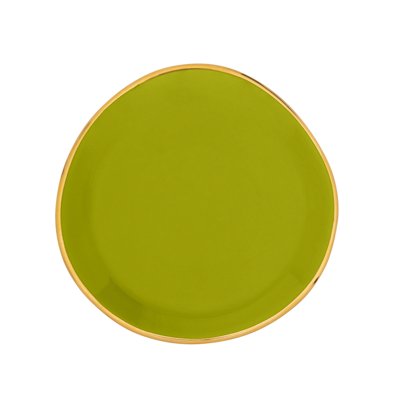 Good Morning mini-bordje met gouden randje, voor petit-four of theezakje.
