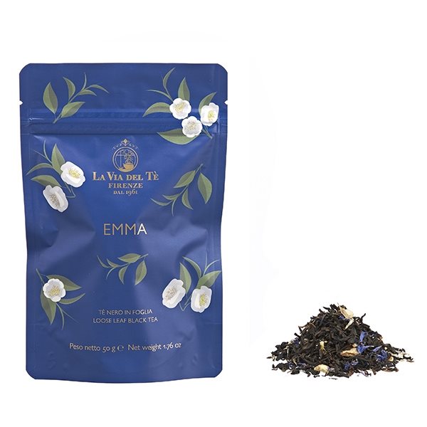 Mooi zakje gevuld met losse theeblaadjes. Een melange van zwarte thee uit India en China met de geur van lichee, citroen en gember. 50 gram