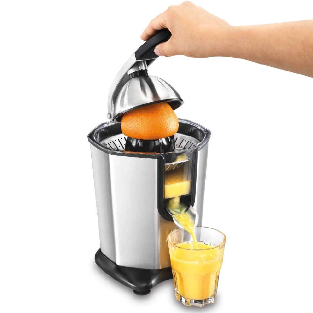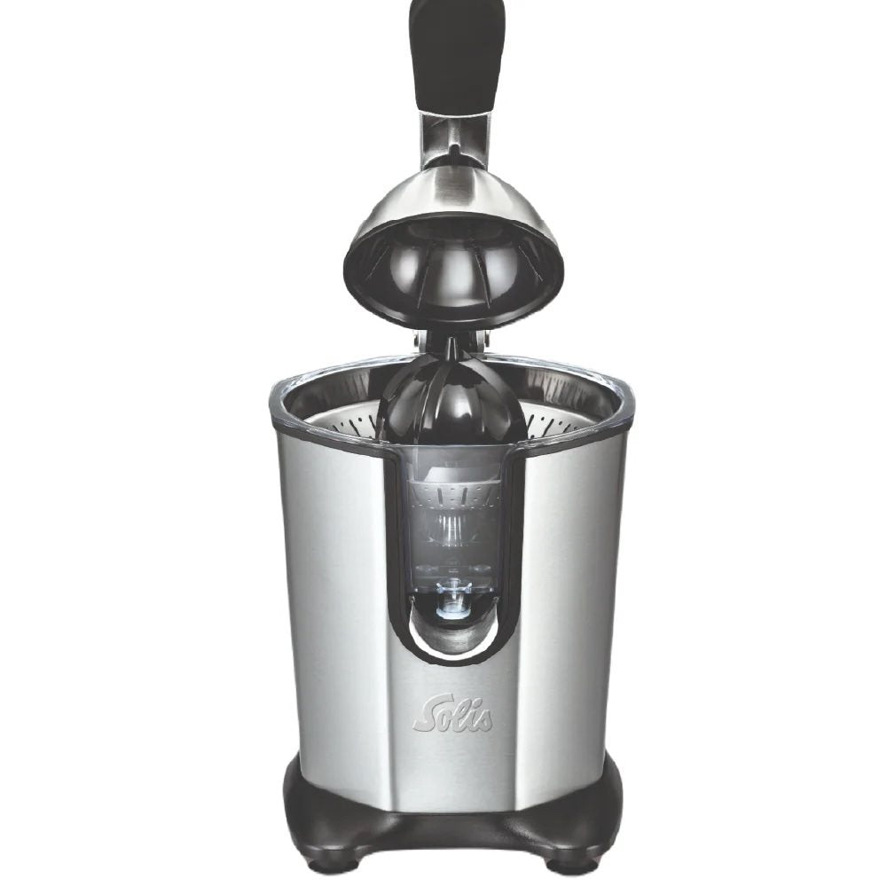 De Solis Citrus Juicer is een alleskunner die niet alleen op zondagochtend voor vers geperst sinaasappelsap zorgt. De sapcentrifuge is gemaakt voor elke citrusvrucht en voorziet je in een mum van tijd van sap vol antioxidanten en vitamine C. Voor gezond en verfrissend vruchtensap: automatische citruspers voor moeiteloos persen van citrusvruchten van alle verschillende groottes. Start automatisch door eenvoudig de persarm naar beneden te drukken. Krachtige en bijzonder stille motor, soft-touch handgreep, veilige stand dankzij antislip zuignapvoeten. De onderdelen van de sapcentrifuge zijn gemakkelijk te verwijderen voor eenvoudige reiniging. De praktische schenktuit met druppelstop kan na het persen omhoog worden ingeklapt om te voorkomen dat er sap uitloopt.