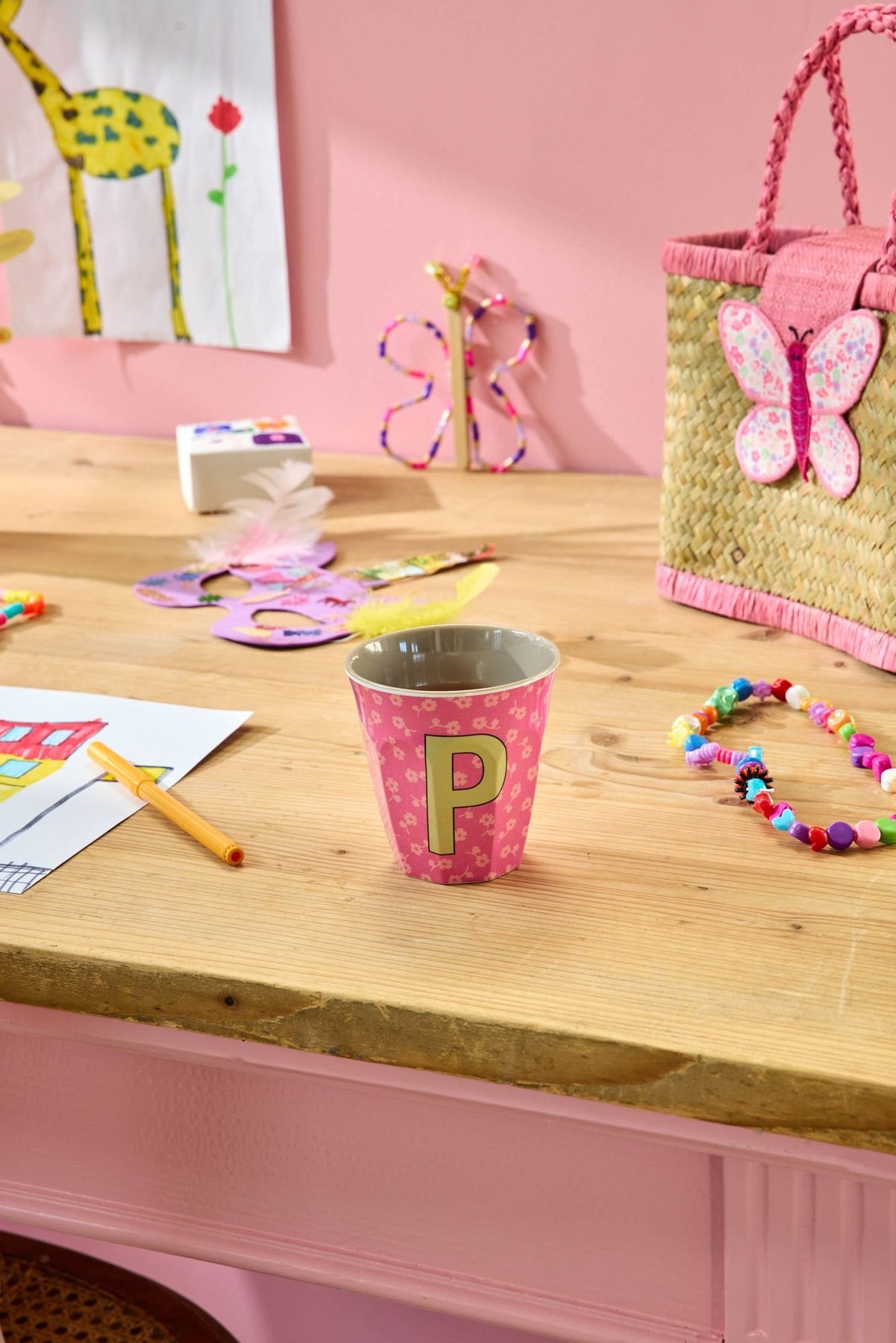 De populaire alfabetbeker – hier met de letter P en bloemetjes. Mix en match en schrijf precies wat je wilt. Of maak het makkelijk voor het hele gezin om een eigen beker te hebben! De beker is een favoriet, en dat is niet voor niets. Hij is gemaakt van melamine, wat duurzaam is en ideaal voor dagelijks gebruik dankzij de stevigheid en het gemak bij het schoonmaken – perfect voor zowel kinderen als volwassenen! Let op: de producten zijn niet geschikt voor de magnetron. 9 x 9 cm