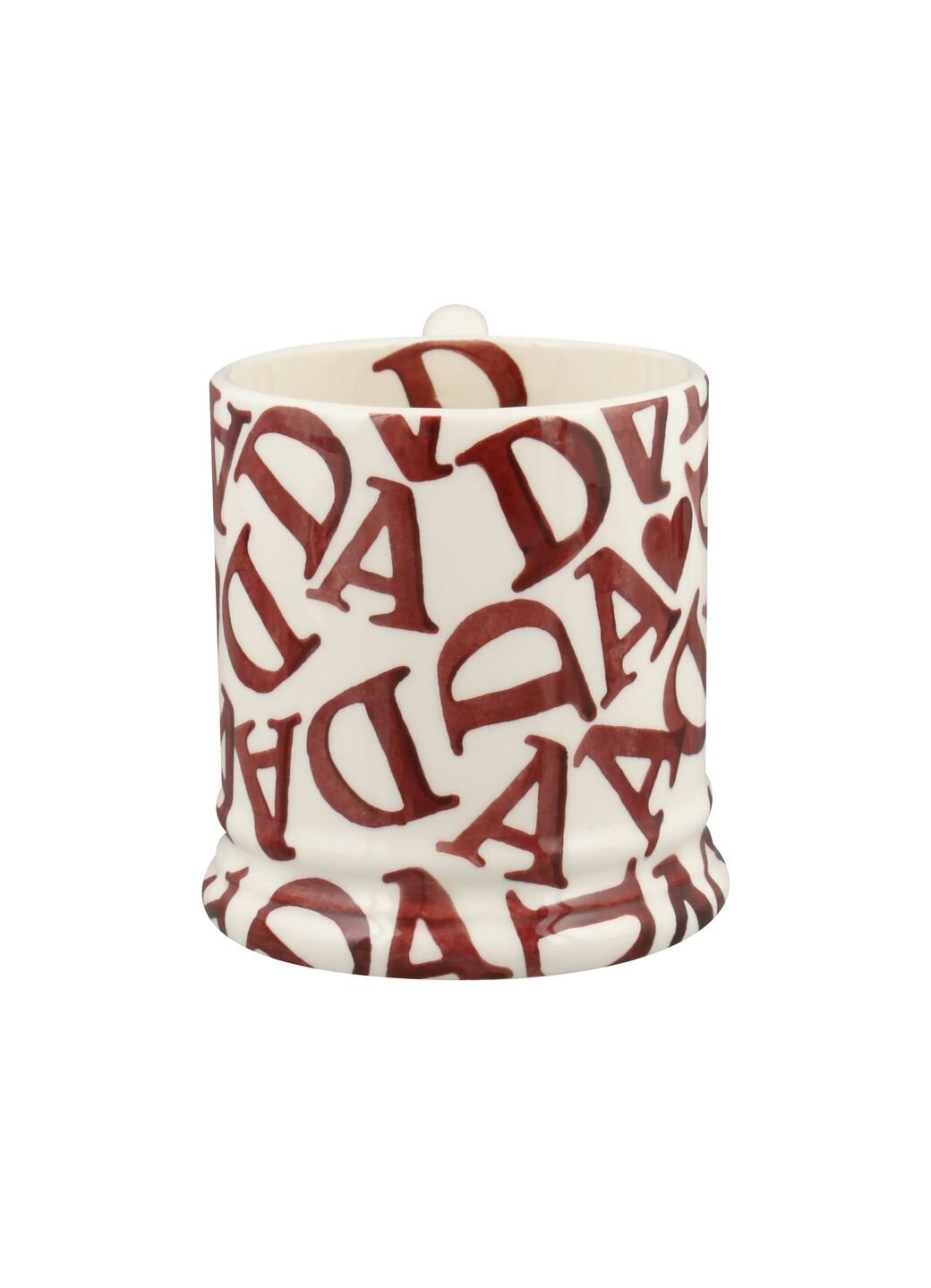 Klassieke 1/2 pint mok van Emma Bridgewater met de tekst DAD print. Alle items van Emma Bridgewater worden met de hand gemaakt in Stoke-on-Trent in Engeland. 1/2 pint (+/- 230 ml)