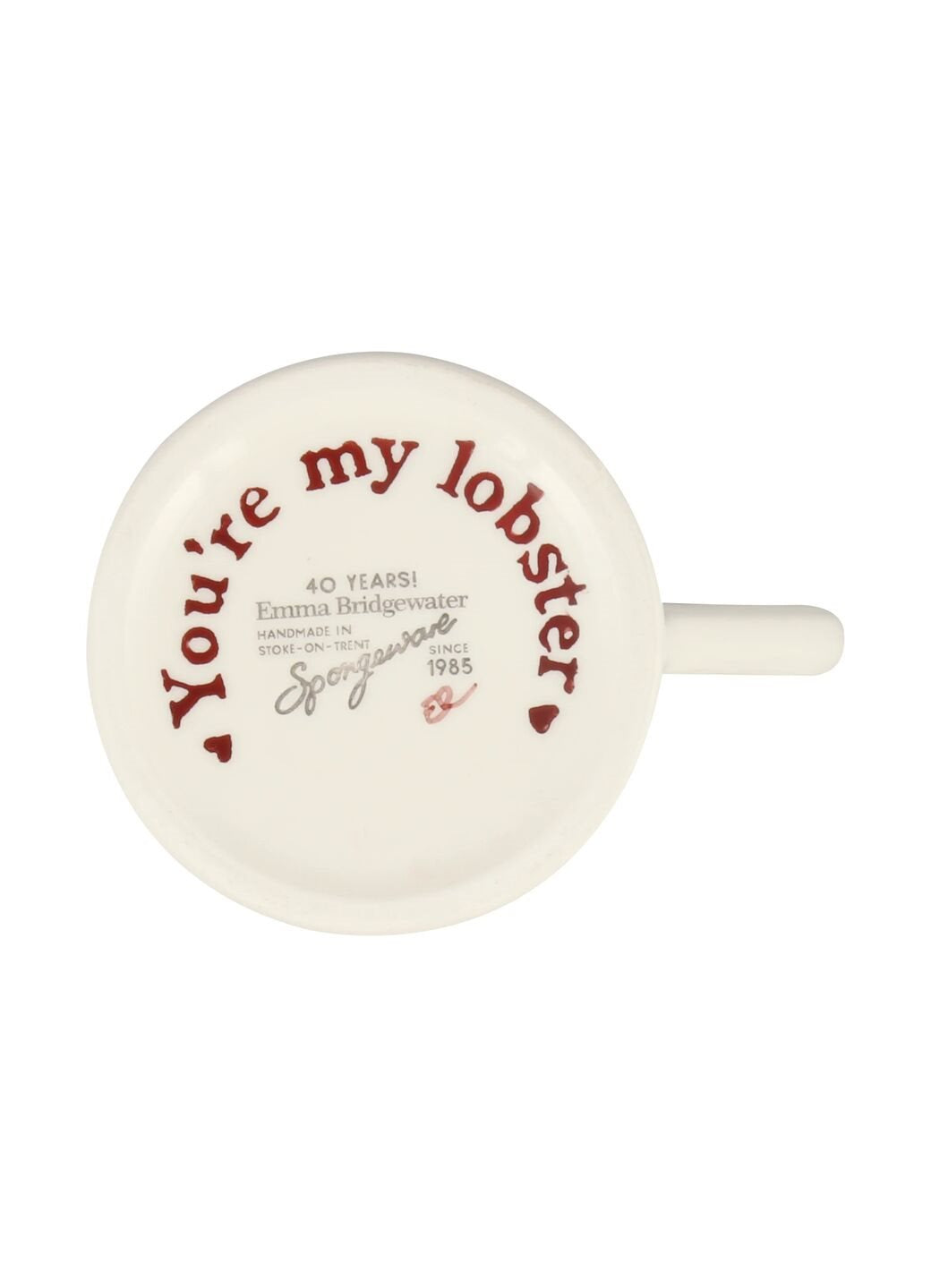Klassieke 1/2 pint mok van Emma Bridgewater met de lobster print en onderop 'You're my lobster.' Alle items van Emma Bridgewater worden met de hand gemaakt in Stoke-on-Trent in Engeland. 1/2 pint (+/- 230 ml)
