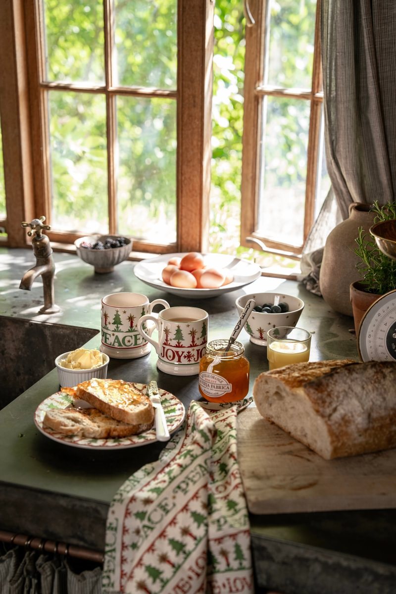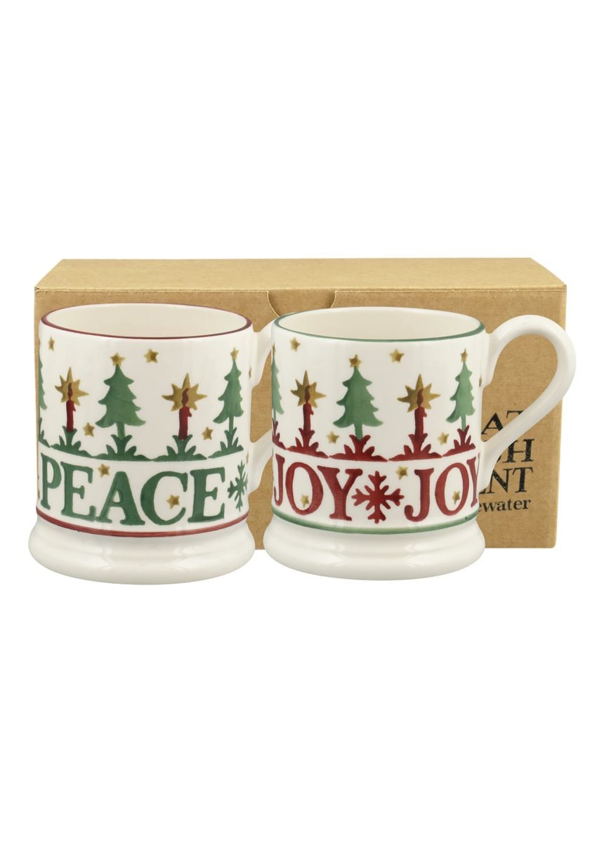 Set van 2 mokken met de print Christmas Joy in een doosje. Alle items van Emma Bridgewater worden met de hand gemaakt in Stoke-on-Trent in Engeland en met de hand bestempeld. Daarvoor wordt een sponsje in de juiste vorm gesneden, waarna het in de verf wordt gedoopt om de print op het servies te drukken. Zo bijzonder! Ieder item is uniek.