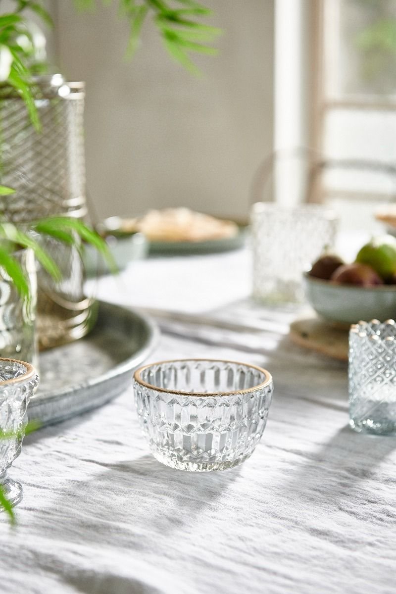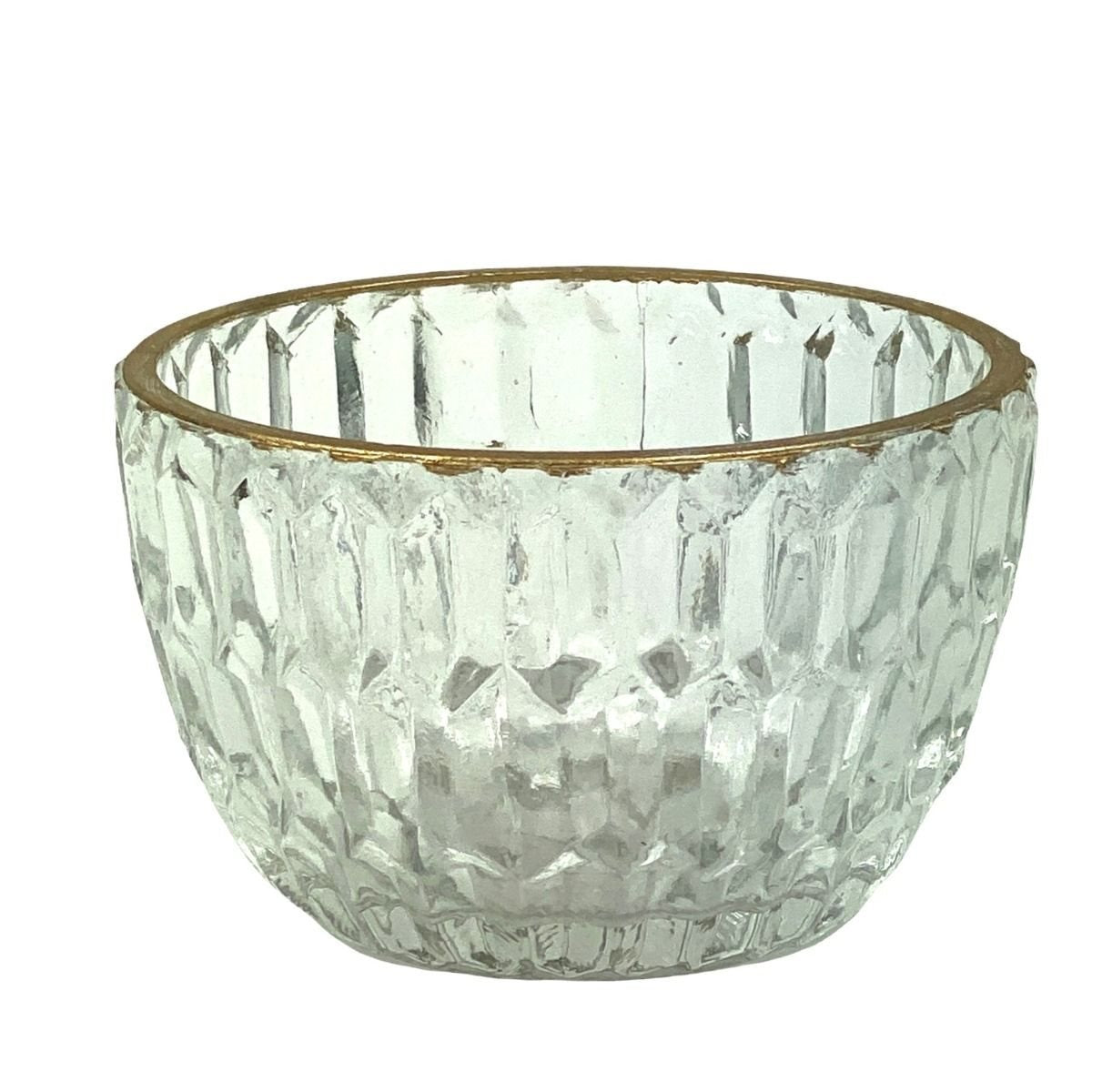 De Weldaad Glazen waxinelichthouder met gouden randje. 10 x 7 cm